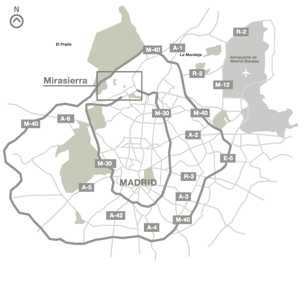 El Barrio de Mirasierra se localiza al norte de la ciudad de Madrid, junto a la carretera de Colmenar, en el distrito de Fuencarral – El Pardo, constituyendo uno de los barrios residenciales más exclusivos por excelencia de toda la capital.